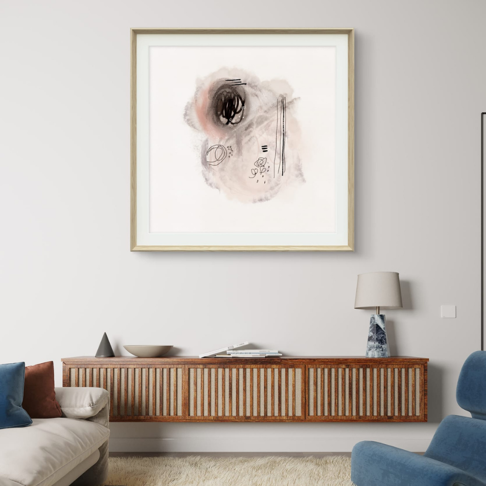 L'équilibre entre les éléments graphiques et les espaces vides crée un sentiment de calme et d'harmonie, tout en permettant au spectateur de s'évader dans une interprétation personnelle.